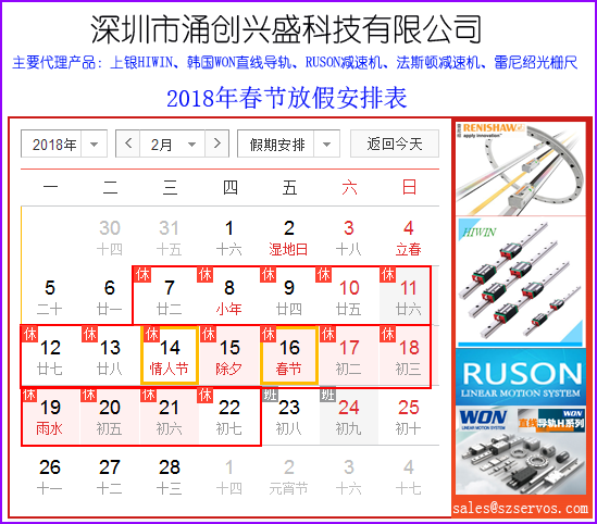 放假期間,為了方便您在節(jié)日期間獲得我們的客戶(hù)服務(wù),您可以通過(guò)電子郵箱:sales@szservos.com與相關(guān)服務(wù)人員取得聯(lián)系。