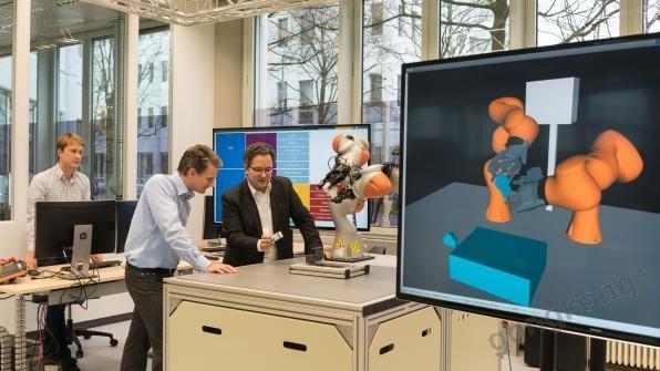 西門子——西門子中央研究院近日在慕尼黑演示了雙臂機(jī)器人的一部分,借助人工智能的高度自動(dòng)化,該機(jī)器人無(wú)需編程即可自主分工協(xié)作,用于產(chǎn)品制造。西門子中央研究院Kai Wurm博士表示,“我們只需告訴機(jī)器人,把某個(gè)部件安裝到導(dǎo)軌上,它就會(huì)執(zhí)行這個(gè)操作。”作為一個(gè)簡(jiǎn)化的例子,這項(xiàng)任務(wù)描述了“單件定制化生產(chǎn)”的內(nèi)涵。其中涉及加工或組裝含有不同部件的多樣化產(chǎn)品。機(jī)器人從關(guān)聯(lián)的軟件模型中獲取制造產(chǎn)品的相關(guān)信息。傳統(tǒng)的機(jī)器人無(wú)法理解這種CAD/CAM(計(jì)算機(jī)輔助設(shè)計(jì)和制造)模型,但新的機(jī)器人原型可以做到。從某種意義上說(shuō),這就好像機(jī)器人能夠理解不同的語(yǔ)言,從而不必對(duì)其運(yùn)動(dòng)和工藝進(jìn)行編程。