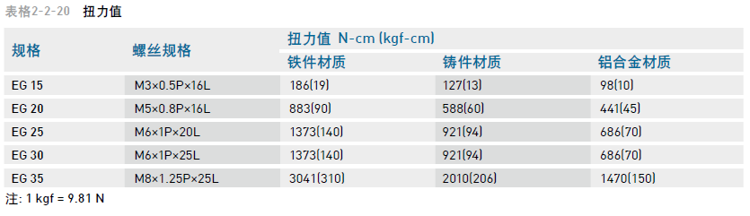 (2) 導軌裝配螺絲之扭力值