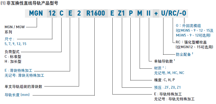 (1) 非互換性直線導(dǎo)軌產(chǎn)品型號(hào)