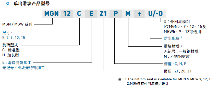直線導(dǎo)軌MG系列的命名規(guī)則及型號(hào)