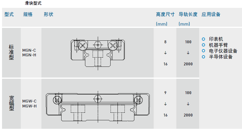 HIWIN提供標(biāo)準(zhǔn)型及寬幅型兩種直線導(dǎo)軌,方便客戶選型使用。