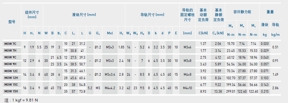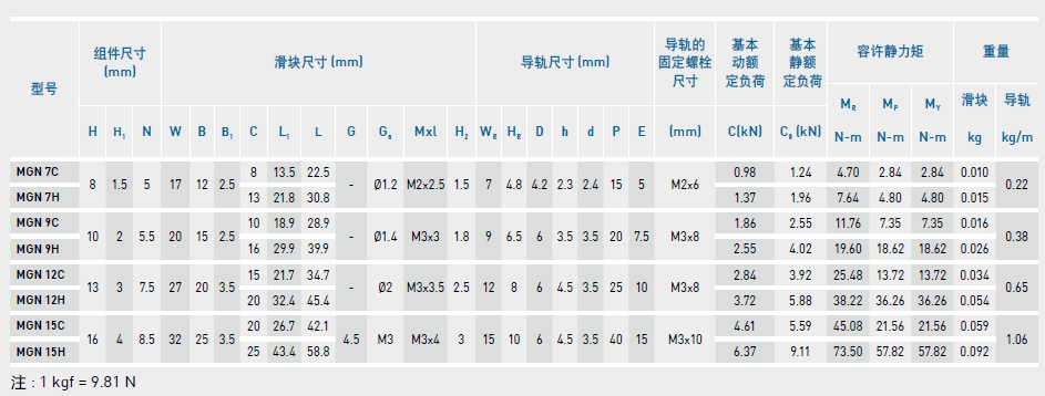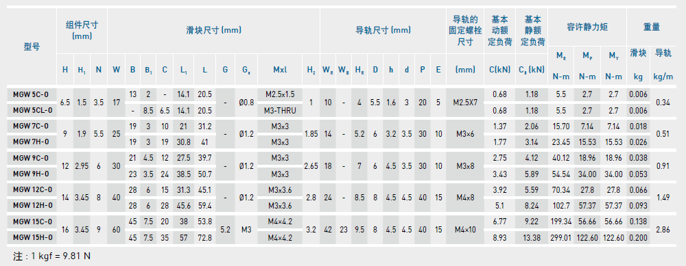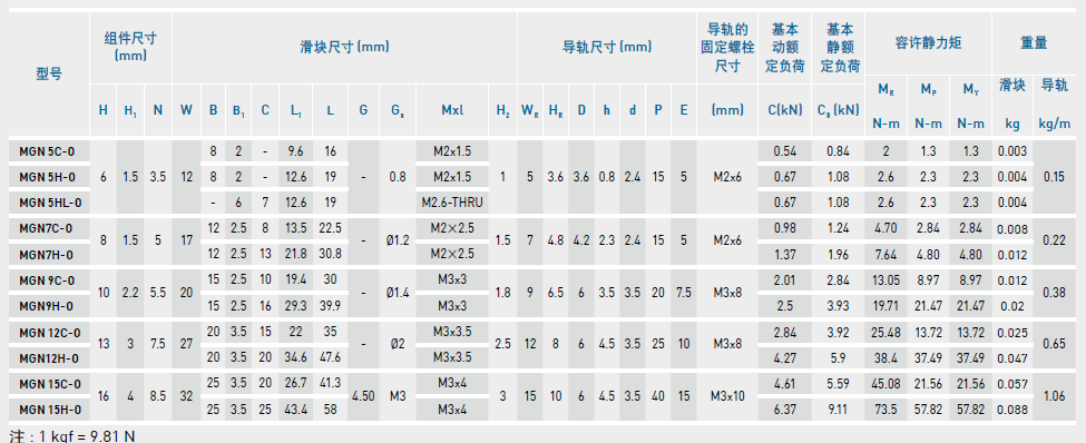微型直線導(dǎo)軌尺寸表介紹及尺寸表對(duì)照