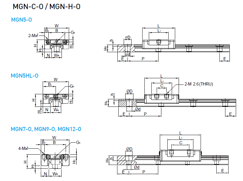 MGN-O中,它同樣具體體積小、輕量化,滑塊主體的一部分采用了樹脂材料,重量減少約20%,特別適合小型化設(shè)備使用。不銹鋼材質(zhì)之線性滑軌,包含滑塊、滑軌及其它金屬配件如鋼珠、保持器等,皆使用不銹鋼材質(zhì),具備防銹的特性。采用哥德型四點(diǎn)接觸設(shè)計(jì),可承受各方向負(fù)荷,具備剛性強(qiáng),精度高等特性。有鋼珠保持器設(shè)計(jì),在精度允許下具備互換性。