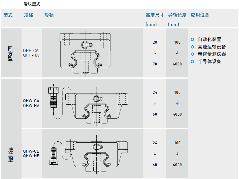 直線導軌靜音QH系列型式及用途
