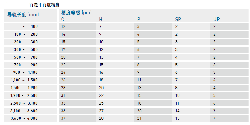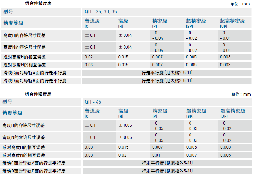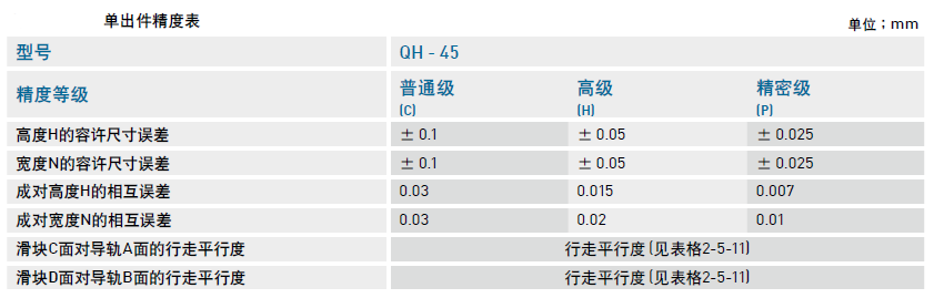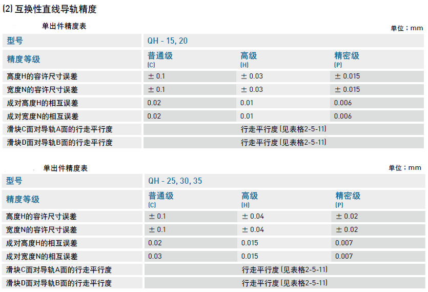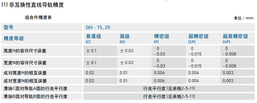 靜音式重負荷型滾珠直線導軌QH系列精度等級