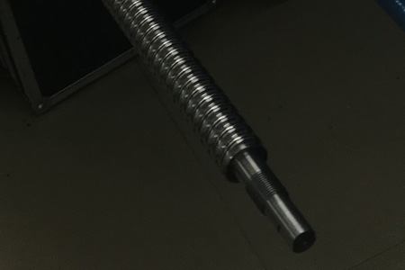 2、滾道全體細(xì)微研傷。將滾珠絲杠置于螺紋磨床兩頂尖間,找正后精磨。應(yīng)嚴(yán)格控制修磨量,不能太大,這樣修出來(lái)的滾珠絲杠副可不替換絲母,通過(guò)調(diào)隙或替換稍大點(diǎn)的滾珠來(lái)恢復(fù)其功能及精度。
